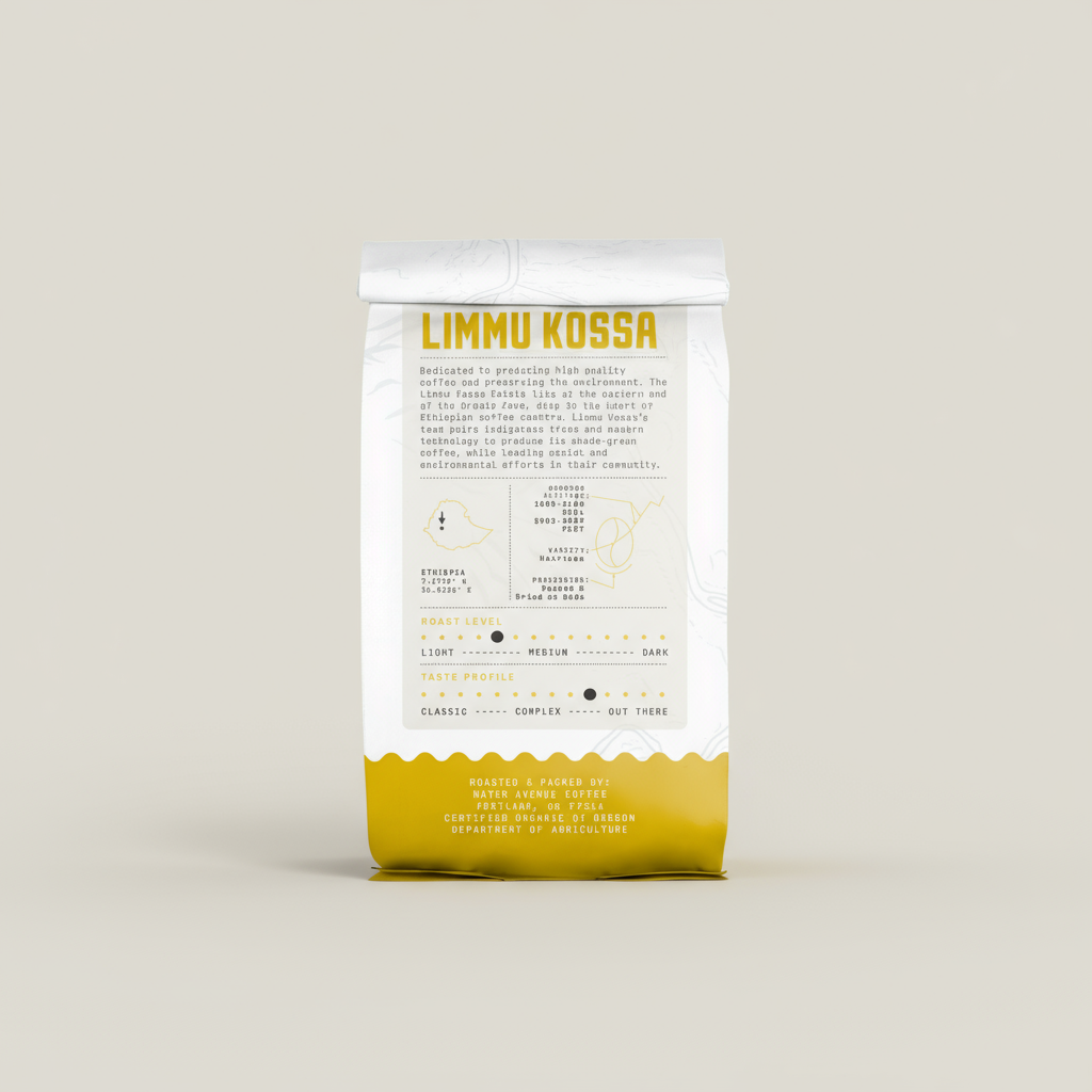 The Limmu Kossa Estate lies in the heart of Ethiopian coffee country, at the eastern end of the Oromia zone. the coffee is harvested during the dry season over several months, washed and lightly fermented to remove all fruit mucilage, and then laid out to dry on an array of covered raised beds. once the coffee has dried to the right moisture level, it is warehoused Addis Ababa, as it makes way to the cargo ships that run out of the port of Djibouti and eventually make their way into the Port of Oakland.
