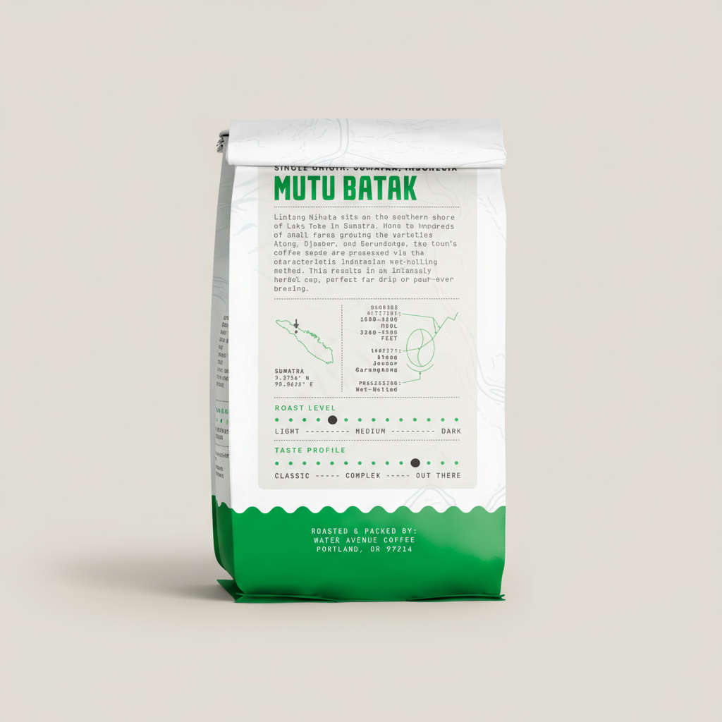 The town of Lintong Nihuta sits on the southern shore of Lake Toba in Sumatra and is home to the hundreds of small farms that produce this coffee. These farms grow Ateng, Djember, and Garundang variety of plants. The coffee seeds are processed in the characteristic Indonesia Wet-hulling method.